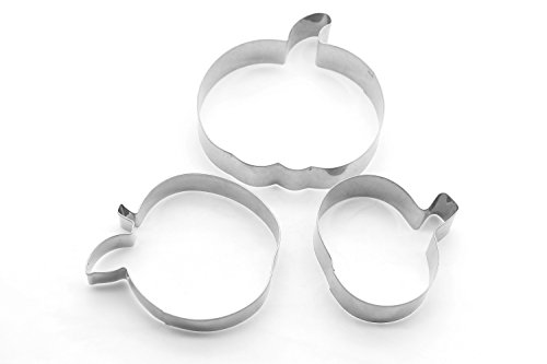 - ★ NO RUST. ★★ Hand wash recommended - Dry thoroughly. ★★★ Sizes approx: Large Pumpkin 4.1" x 4.0", 1.0" high; Small Pumpkin 3.0" x 2.8", 1.0" high; Apple 3.9" x 3.1", 0.8" high. ★★★★ 100% Satisfaction guarantee! If you aren’t happy with your cookie cutters simply let us know and we’ll promptly send you a full refund. No hassle and absolutely no risk on your part.