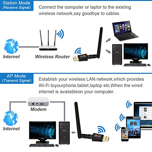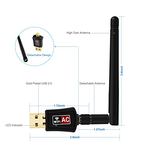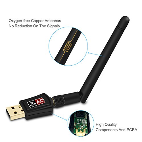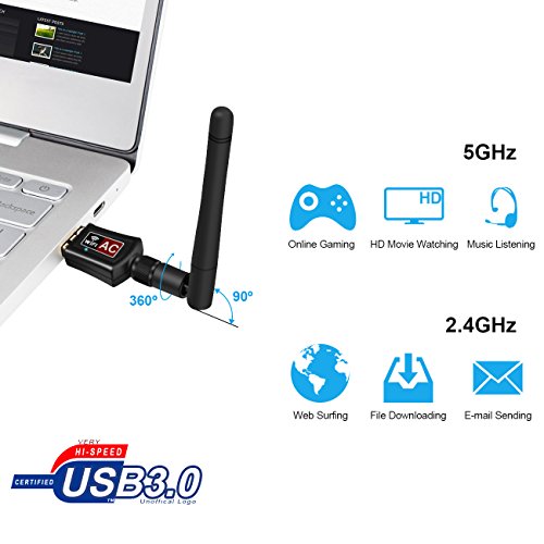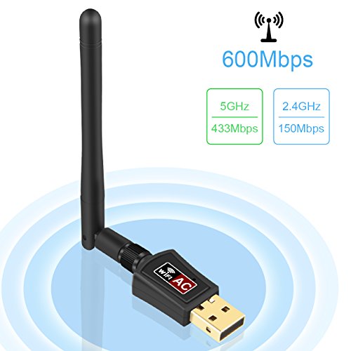 Zoweetek 600Mbps 802.11ac Dual Band 2.4GHz (150Mbps) /5GHz (433Mbps) WiFi USB Adapter with 2dBi External Antenna for Windows, Mac OS and Linux