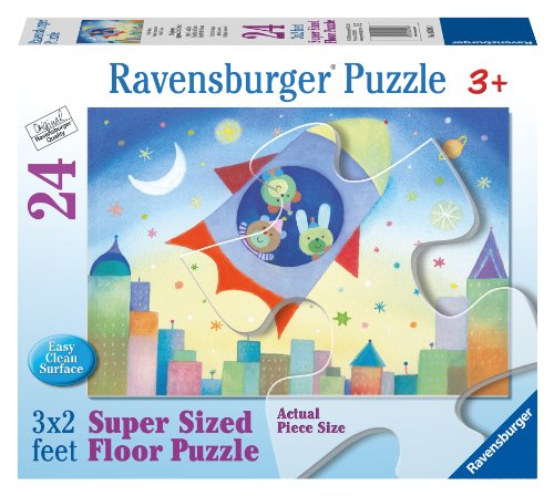 -. Binding : Toy -. Brand : Ravensburger -. Color : Blue -. Department : unisex-child -. EAN : 4005556053483 -. Feature : Puzzle measures 24" x 36" / Puzzles help support a child's development as they play / While piecing together various shapes and sizes to discover a bigger picture, a child develops concentration and creativity -. Genre : strategy -. ItemPartNumber : RVB05348 -. Label : Ravensburger -. Manufacturer : Ravensburger -. Model : 05348 -. MPN : 5348 -. NumberOfItems : 1 -. PackageQuantity : 1 -. PartNumber : 5348 -. ProductGroup : Toy -. ProductTypeName : TOYS_AND_GAMES -. Publisher : Ravensburger -. ReleaseDate : 2012-01-01 -. Studio : Ravensburger -. Title : To The Moon 24 Piece Floor Puzzle -. Warranty : No Warranty
