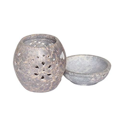 Artistic India Handmade Essential Oil Diffuser, Oil Burner with Tea Light Holder for Aromatherapy - Artisan Handcarved Soapstone 4" with Intricate Elegant Tendril Openwor