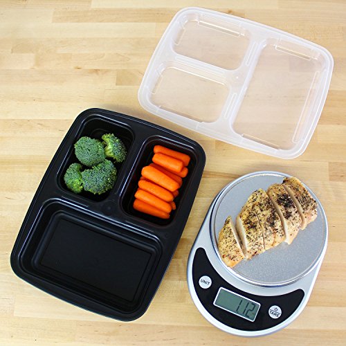 FRESHWARE 3 COMPARTMENTS BENTO LUNCH BOX WITH AIRTIGHT LIDS (7 PACK), BLACK
