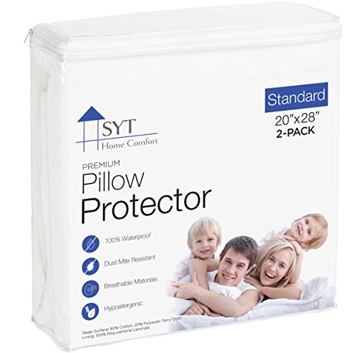 Pillow Protector By SYT Home Comfort, Waterproof, Hypoallergenic, Silent, Multiple Sizes, Cotten Terry, 2 Pack (Standard)