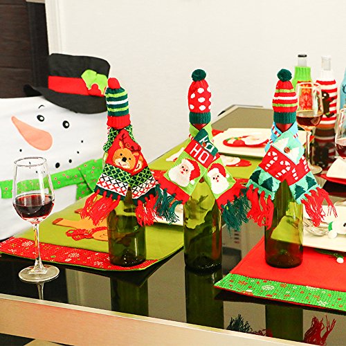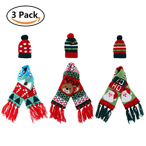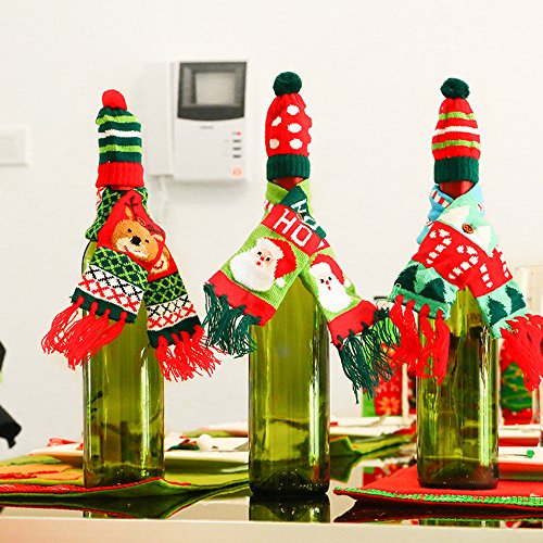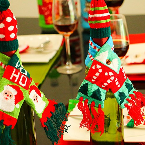 SUITABLE SIZE: Fits for different bottles. Size(Approx):Scarf:1.96 x16.92'', Hat:1.57x 3.54''; Durable enough and washable to repeat use for the next Xmas season.