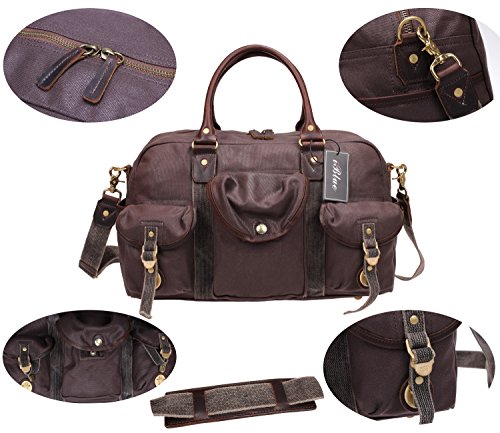 - ✔Multi Pockets- The Canvas Leather Weekender Bag Has 3 Front Pockets,2 Side Pockets, 1 Back Pocket.