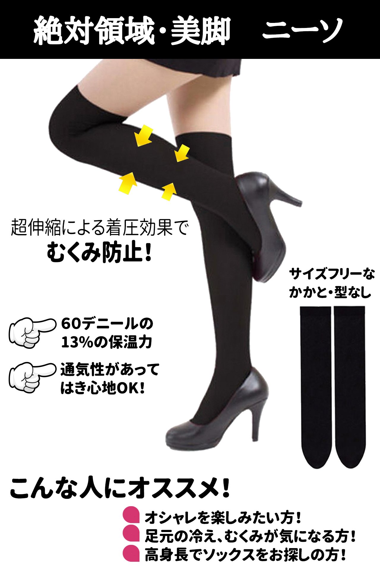 Maintaining your legs by preventing swelling of your feet due to telescopic pressure The moderate thickness of about 60 denier has a 13% heat retention capacity compared to bare skin.