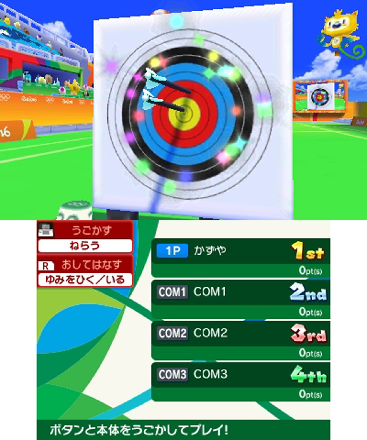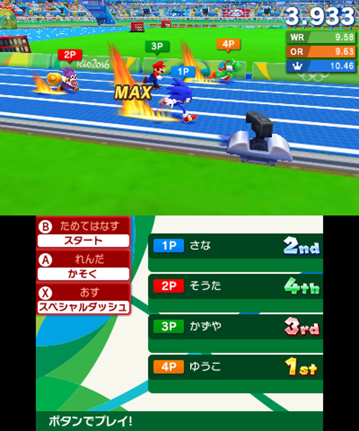 オリンピックの正式競技を14種目収録。 さらに、マリオやソニックの世界観が加わったダイナミックな「エクストラ競技」でも熱い戦いが繰り広げられる。 マリオとソニックのamiiboに対応。特別なコスチュームでMiiを強化。 ダウンロードプレイに対応。本体を持ち寄ればソフト1本ですべての競技を最大4人で遊べる。