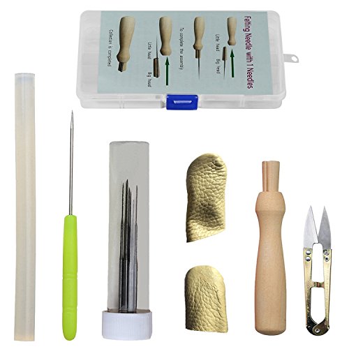 - Complete Wool Felting Tools Kits:the package includes 7pcs Felting Needle,1pcs Needle Bottle,2pcs Leather Finger Cot,1pcs Wooden Felting Needle,1pcs Scissor,1pcs Awl Needle,1pcs Glue Stick and 1pcs Plastic Storage Box which are great for beginners and Felting Wool lovers.