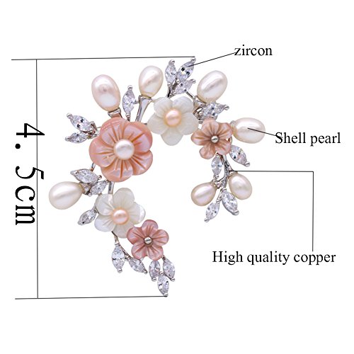 -. Title : SHAN LI HUA Flower Brooch Pins for Womens Ladies Shell Pearl Safety pin Accessories White Gold