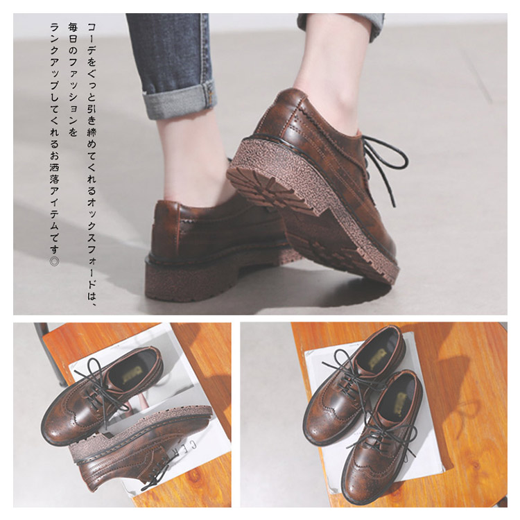 | お洒落さんなら絶対取り入れたい上品なオックスフォードシューズ!シンプルなフォルムでありつつ、どこかお洒落でレトロな雰囲気漂うデザインが人気の秘密♪さらに、レトロ感漂うフロントのレースアップが、シンプルな中にもお洒落なポイント!!オーソドックスなディティールだからこそ、どんなコーデにも取り入れやすいアイテムですね☆ | |