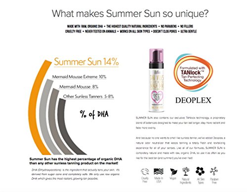 Made with raw, organic DHA The highest quality natural ingredients. No parabens, No fillers, Cruelty free, and works on all skin types! Does not clog pores. Ultra gentle Formulated with TANLock Tan Perfecting Technology.Feature