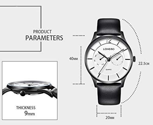 -. Feature : 素材:本革、合金、強化ガラス / サイズ:バンド幅20mm、バンド長さ(ケース含む)25.3mm、ケース厚み9mm / スタイル:ビジネス&ファション 適用:20代、30代、40代 / 機能:日付、曜日表示、アナログ表示 / 付属品:ボックス