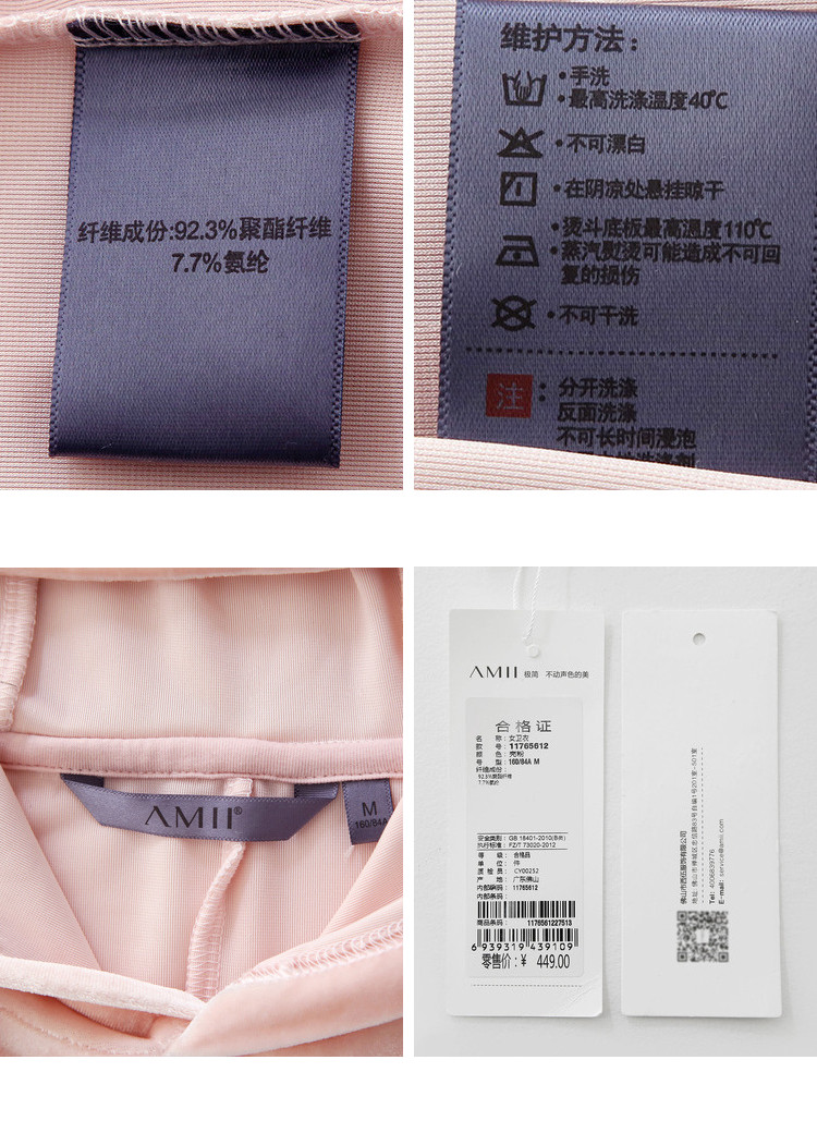 | 洗涤标准: | 悬挂晾干110℃以下垫布熨烫40℃以下手洗不可漂白不可干洗不可浸泡 |