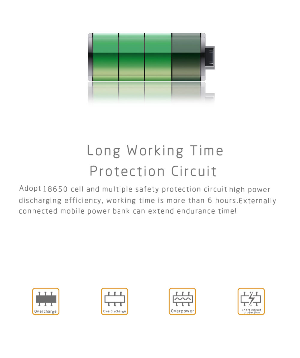 Micro USB can connect power bank, extend working hours. (power bank NOT included).