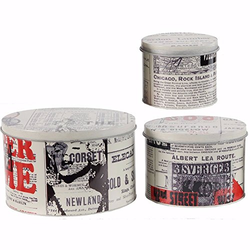 Benzara Paper Print Round Decorative Tin Boxes-Set of 3, Multicolor