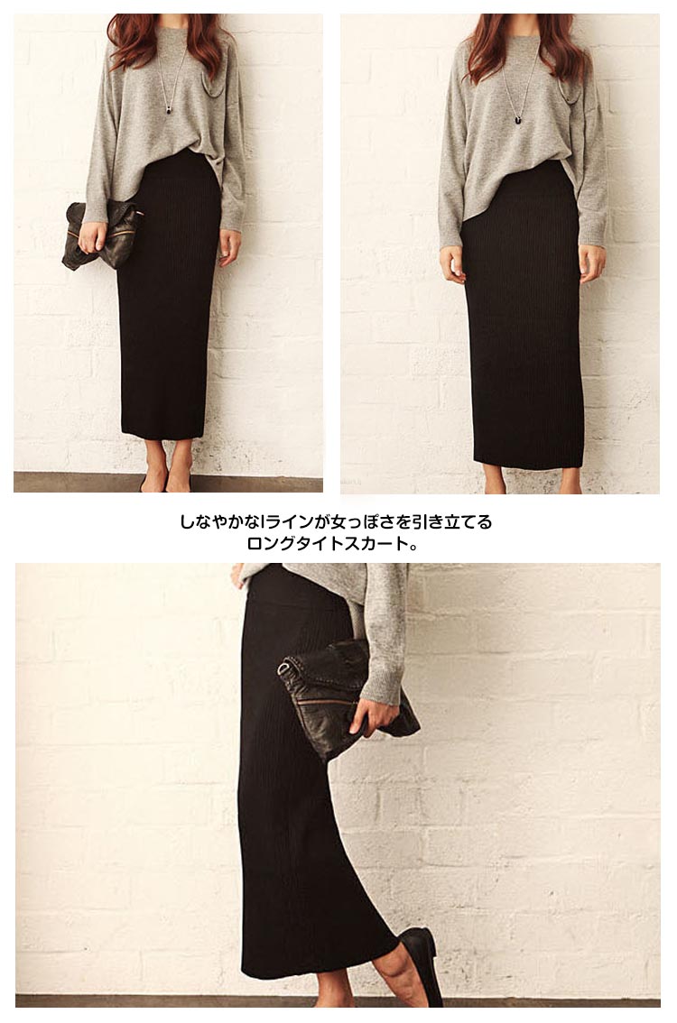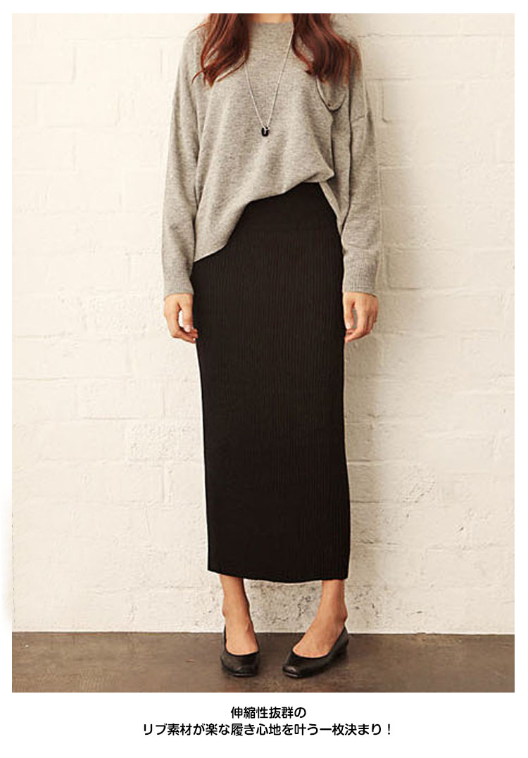 | 今季トレンドのリブニットをタイトなスカートにアレンジ。しなやかなIラインが女っぽさを引き立てるロングタイトスカート。伸縮性抜群のリブ素材が楽な履き心地を叶う一枚決まり!程度よくボディにフィットするシルエットとミディアム丈が女っぷりを格上げ。 | |