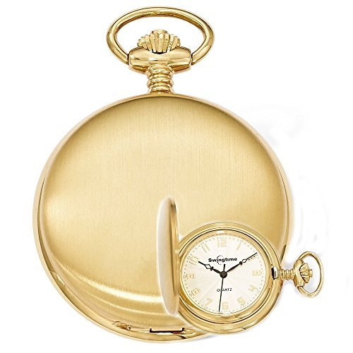 -. Title : Swingtime Engravable Satin Goldtone Brass Quartz Date Mens Pocket Watch