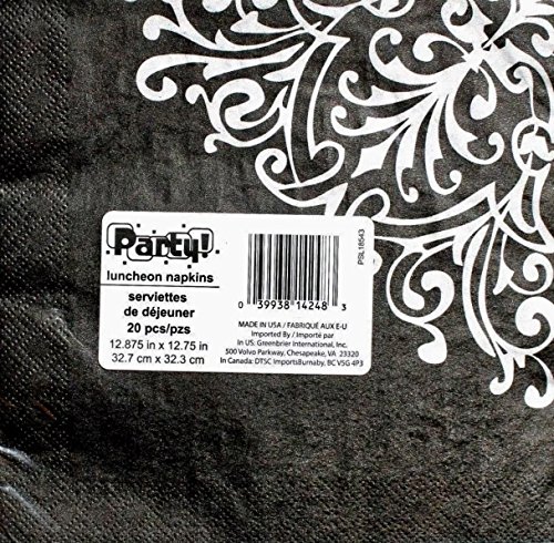 Party! Luncheon Napkins ~ Damask White on Black Set of 20