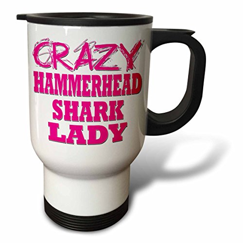 3dRose tm_175095_1 Crazy Hammerhead Shark Lady Travel Mug, 14 oz, Stainless Steel, White