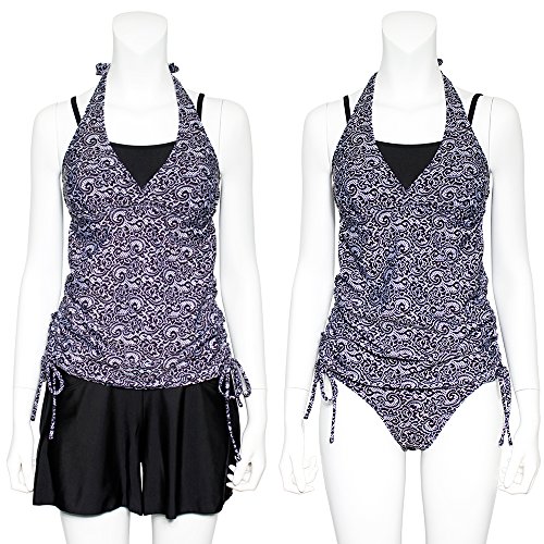 -. Feature : No.10003 レディース 体型カバー 水着 タンキニ 3点セット / カラー:ブラックレース / ネイビーチェックフラワー / ネイビーハイビスカス / パープル / 原産地:中国製 / キャミソールトップ一体型タンキニ!キュロットでヒップラインも体型カバー◎ / 胸パッド取り外し、ウエストサイドギャザー調節可!UPF50+でUV対策バッチリです♪