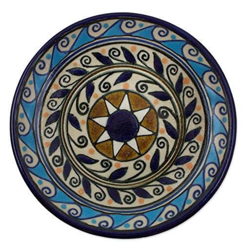 NOVICA Beige and Blue Hacienda Ceramic Salad Plates, 'Puerto Escondido' (pair)