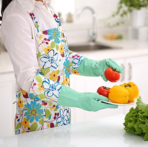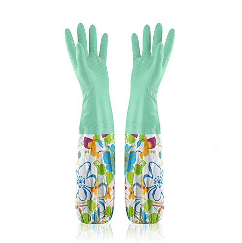 Ewandastore Long Sleeve Floral Flower Gloves Latex Gloves Dishwashing Gloves Household Housework Gloves Water Stop Laundry Rubber Gloves Cleaning Gloves,Free Size,Thin,Green