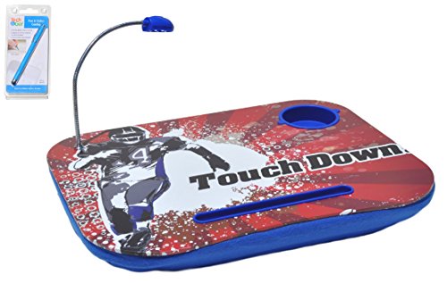 -. Binding : Office Product -. Brand : Total Vision -. Color : TVColor2 -. EAN : 0728461596053 -. Feature : Laptop/Tablet table is lightweight and portable - - even has a handle to make carrying it even easier / Built-in drink holder and 12" flexible lamp to help you work in comfort / Extra large table measures 17" wide x 13" long x 3" thick / Operates with 3 x AA batteries (not included) / Comes with a stylus. Assorted colors, please allow us to select a stylus color for you. The stylus is zippered in the cushion to protect it during shipping. Please unzip the cushion in the back to retrieve. -. Label : TotalVision -. Manufacturer : TotalVision -. MPN : MS2609 -. PackageQuantity : 1 -. PartNumber : MS2609 -. ProductGroup : Office Product -. ProductTypeName : OFFICE_PRODUCTS -. Publisher : TotalVision -. Studio : TotalVision -. Title : Red Football Portable Laptop Tablet Notebook Computer Lap Desk with Cup Holder Light Cushion Pillow Best Unique Gift for Girls Boys Teens Kids Adults with Stylus -. UPC : 728461596053