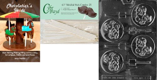 Cybrtrayd 'Peeking Boo Ghost Pop' Halloween Chocolate Candy Mold with 25 4.5-Inch Lollipop Sticks and Chocolatier's Guide