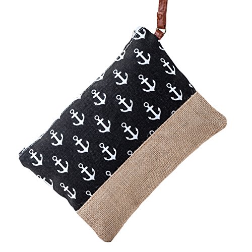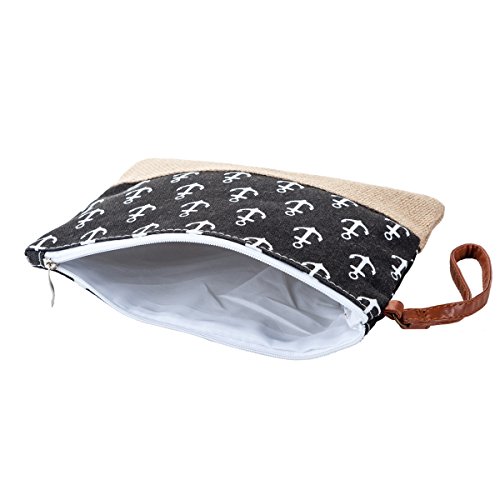 MISS FANTASY Beach Bag Anchor Print Straw Beach Tote Large Capacity Shoulder Bag