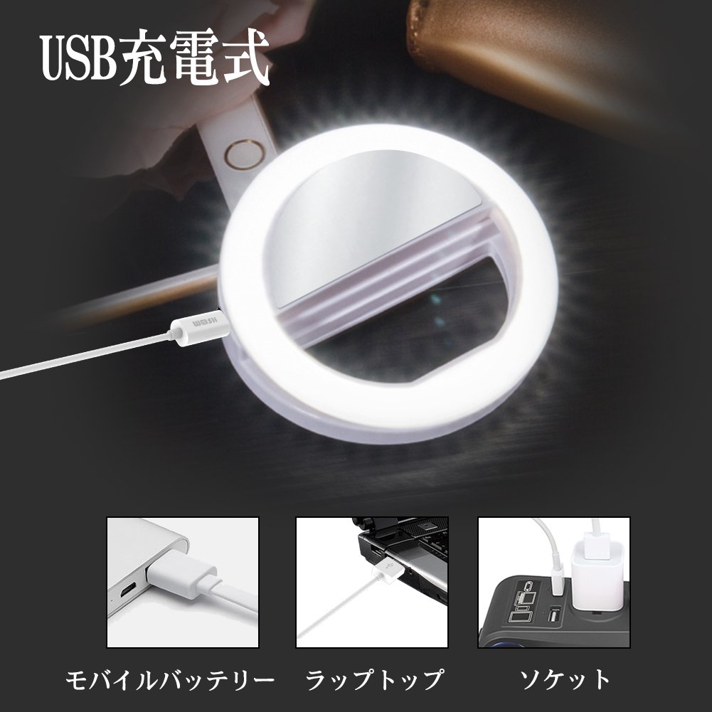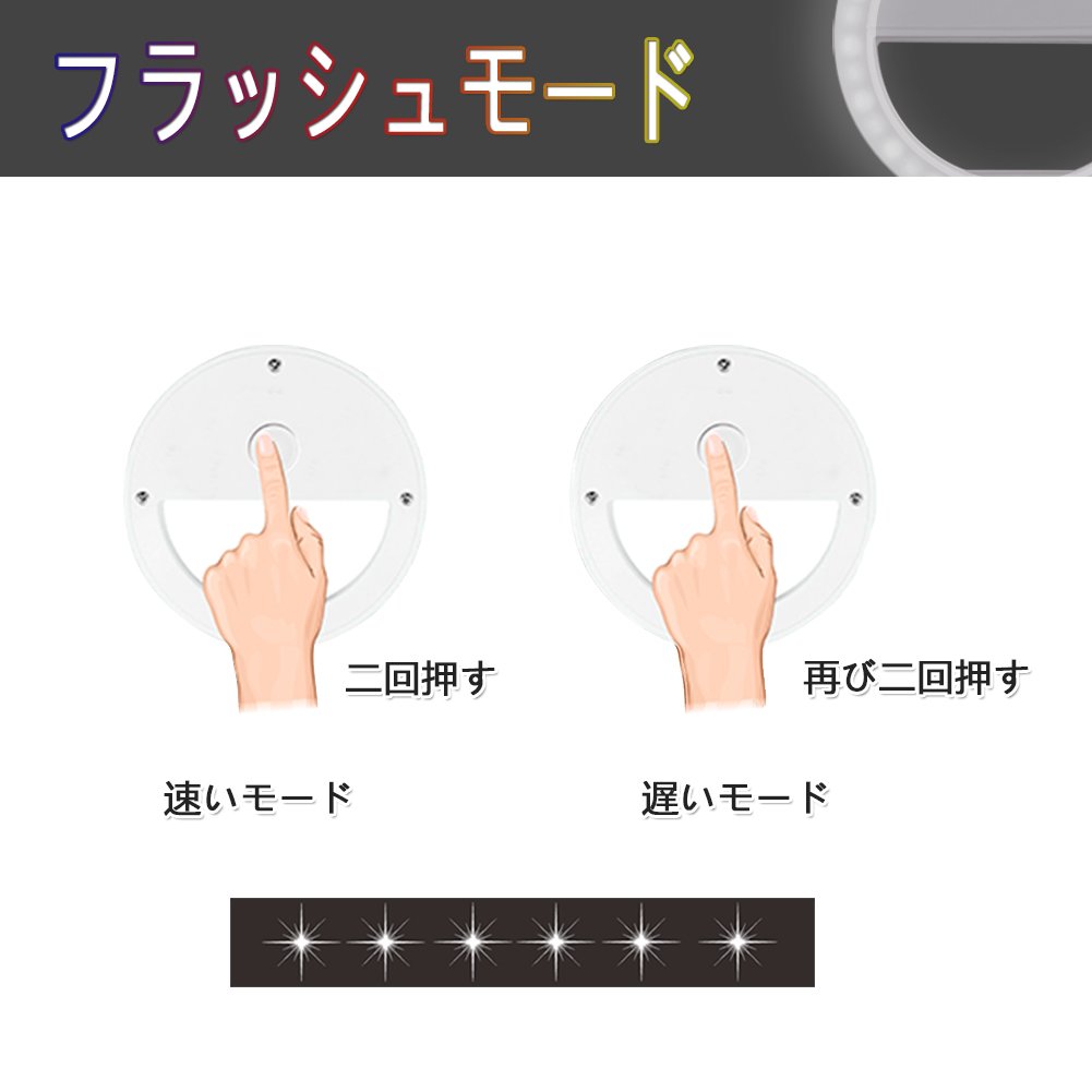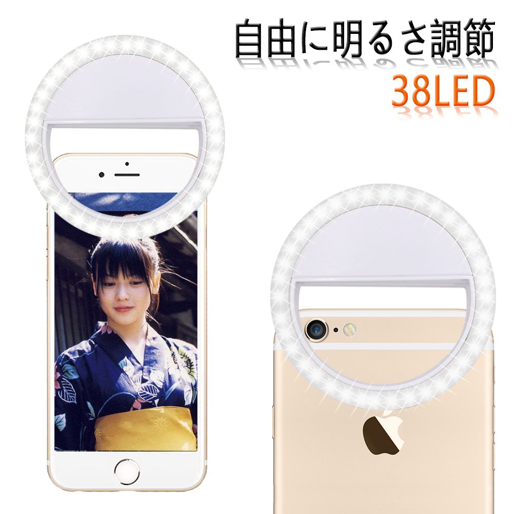 Clip-based self-shooting ringlight with 38 white LEDs, Ring Lite, adjustable brightness, there are flash modes, and it's great.