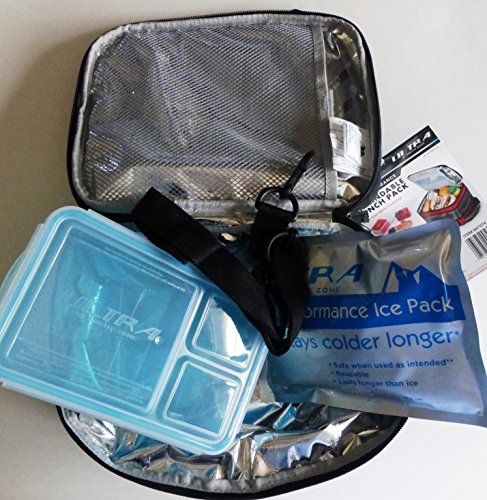 Ultra High Performance Expandable Lunch Pack Bag Double Capacity with Removable Compartments & Ice Pack (Blue)