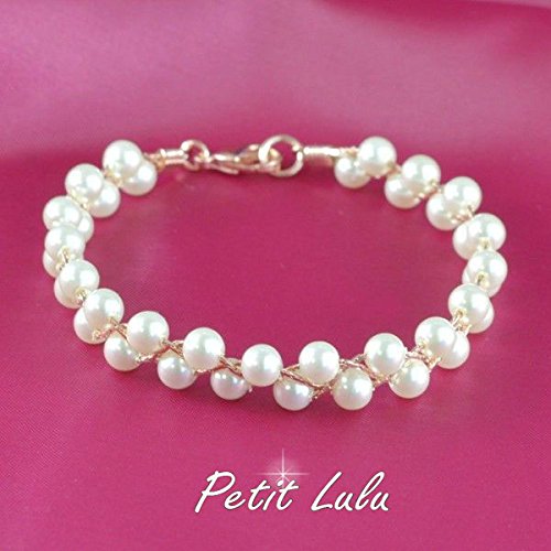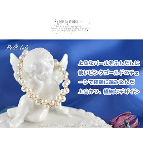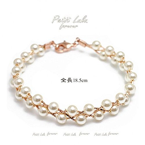 上品なパールをふんだんに使いピンクゴールドのチェーンで綺麗に編み込んだ上品かつ、繊細なデザインのブレスレットになっております。気品溢れるパールを身に着けることによってワンランク上のオシャレを楽しめます。ボリューム感がありながらも女性ならではの華奢で繊細な手首の演出が出来る商品なので一つは欲しい逸品です。
