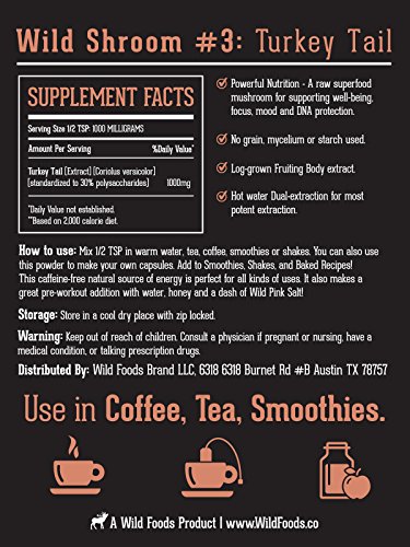 Turkey Tail Mushroom Extract by Wild Foods - Trametes Versicolor - 10:1 Water-Extracted Fruiting Bodies Only - No Grain/Mycelium - Nootropic Powder...
