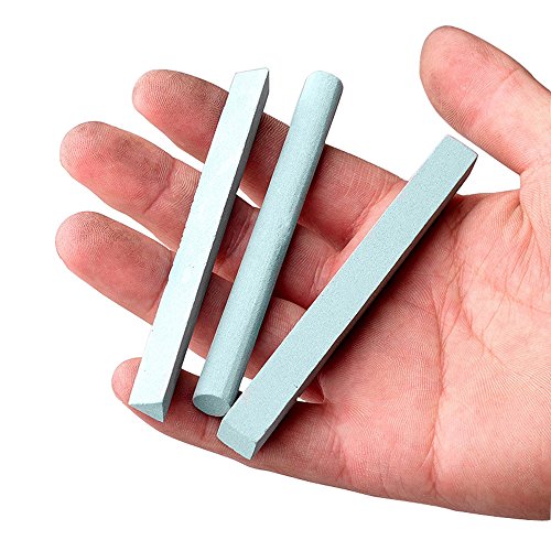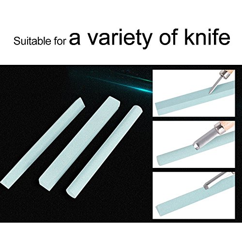 - 3 Piece Whetstone Set: Cylindrical Whetstone: for the curved knife, inner arc knife and other round knives; Rectangle Whetstone: for flat knife, beveled knife and other flat knives; Triangle Whetstone: for triangular knife and other inside tip shaped knives. Length: 10*100mm.