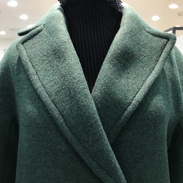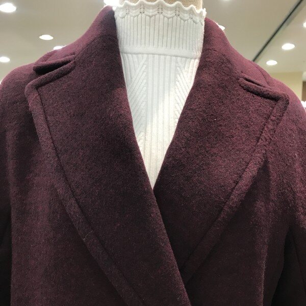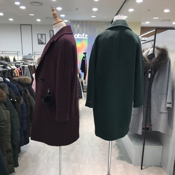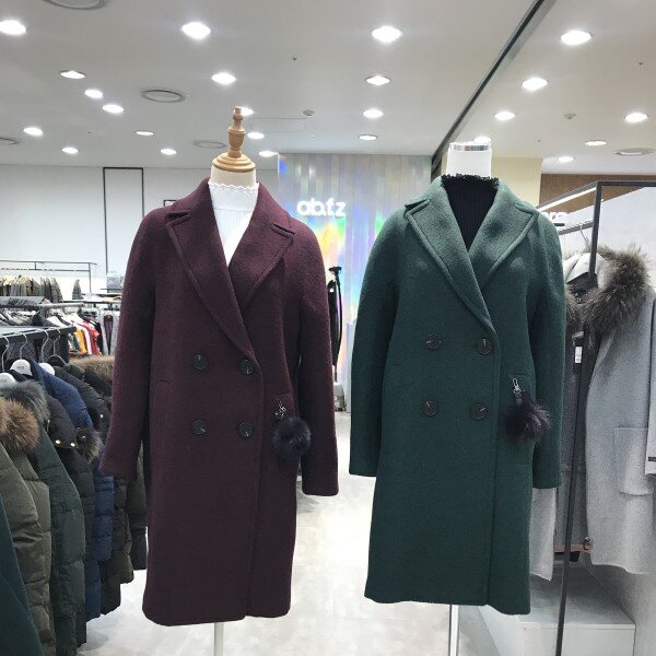 귀엽고 여성스러운 모혼방 더블코트입니다카라스티치와 여우털 장식이 단조롭지않게해줍니다