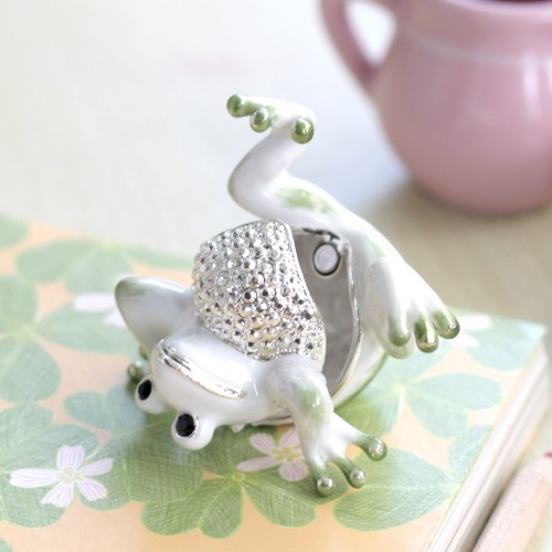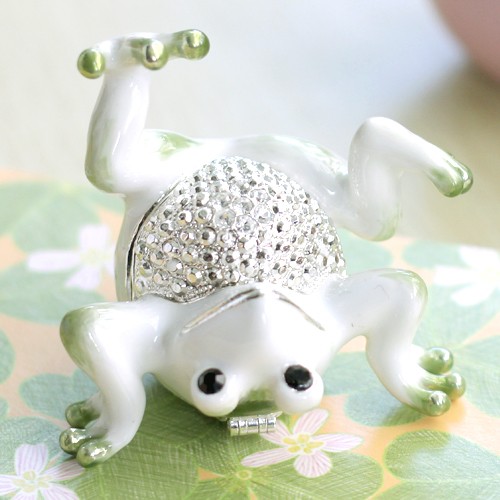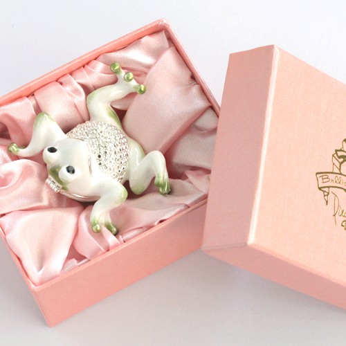 | ジュエリーボックスと言えば、指輪やピアス、ネックレスなどのアクセサリーを入れる引き出し型のケースを思い浮かべる方が多いかもしれません。 ピィアースのジュエリーボックスは、動物や花などをモチーフに作られ、合金製でずっしりとした重さがあります。また高品質のクリスタルガラスを贅沢に使用。まるでジュエリーボックスそのものが宝石のような、高級感溢れる仕上がりです。 小物入れとしても使えるように開閉口には磁石が取り付けてあり、アクセサリーなどなくしやすいアイテムの収納ができます。キラキラと美しく輝く宝石箱は、そのまま飾って楽しめるインテリア雑貨として多くの方に愛されています。 国内トップクラスのジュエリーボックスメーカーであるピィアースは、2004年ごろから本格的に宝石箱の製造を始め、現在のジュエリーボックスはなんと300種類以上。大規模展示会でもご好評いただいており、全国有名百貨店でも販売されています。 自社工場でひとつひとつ丁寧に手作りし、原型作成、研磨、加工、着色、小さなクリスタルガラスの取り付けなども全て手作業で行われるこだわりのハンドメイド品。完成後は厳しい検品の後、丁寧に梱包作業をしお客様にお届けしております。 ピィアース商品は、全国有名百貨店および全国有名宝石店チェーンにてお取り扱いいただいている高品質商品です。 ★自分へのご褒美に…コレクションして並べて飾ると、さらにかわいらしさUP! ★恋人へのプレゼント…中にアクセサリーを入れて、サプライズな贈り物として ★家族への感謝ギフト…お母さんや姉妹へ、日頃のありがとうの気持ちを込めて ★誕生日プレゼント…お友達の喜ぶ顔が見たいから、いつもと違うキラキラギフトを ★小さな女の子へ…まるでお姫様が使っているようなキラキラ宝石箱は女の子の憧れ! |