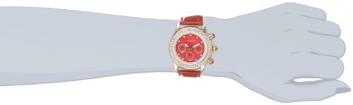 -. Feature : Swiss quartz multifunction movement. Red, mother of pearl dial / Subdials at 3, 6 and 9 o'clock position / One row of genuine crystals on the rose-tone bezel / Rose-tone, luminescent hands / Not water resistant