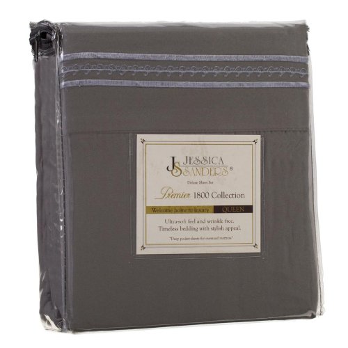 Jessica Sanders Premier 1800 Series 3pc Bed Sheet Set- Twin (Single), Charcoal Stone Gray, (75"x39" Fits XL) - Jessica Sanders Embroidery