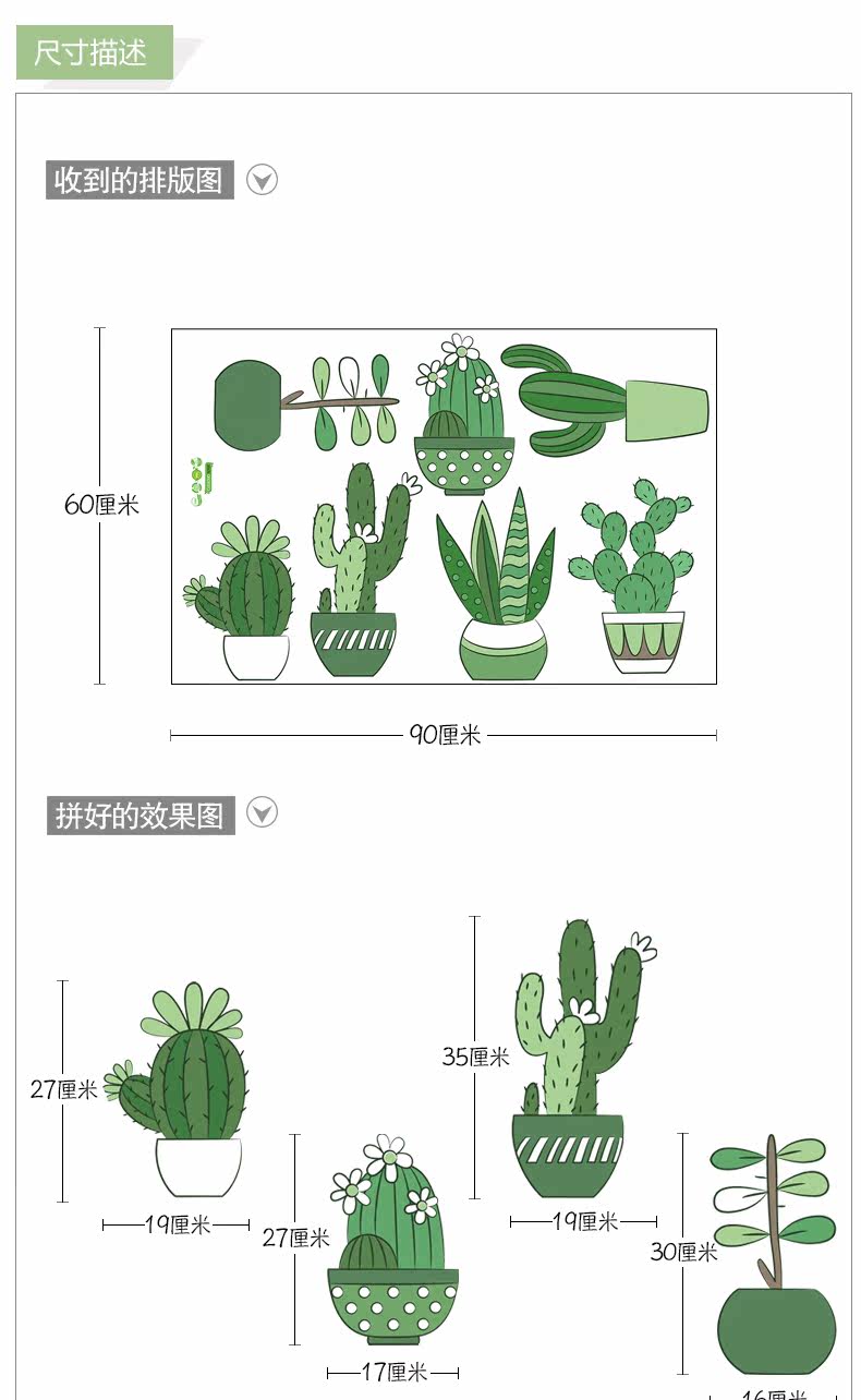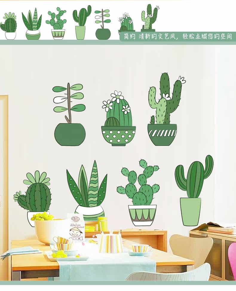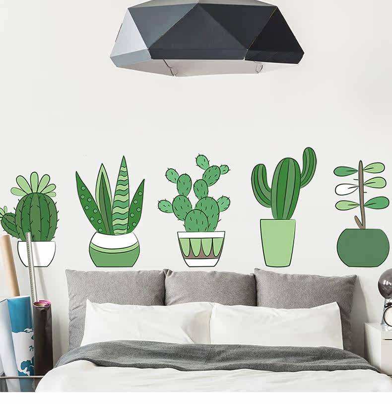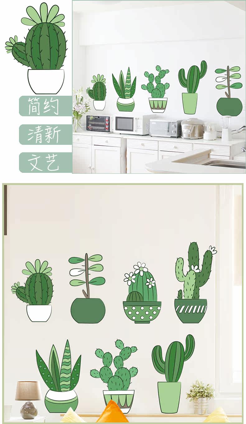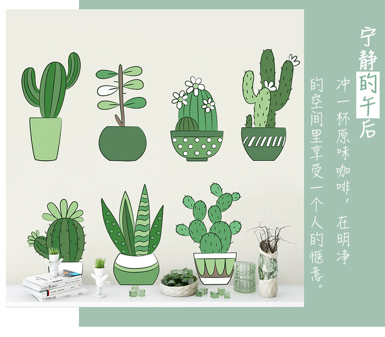 田园创意小清新仙人掌墙贴卧室房间床头温馨装饰贴纸墙纸自粘贴画