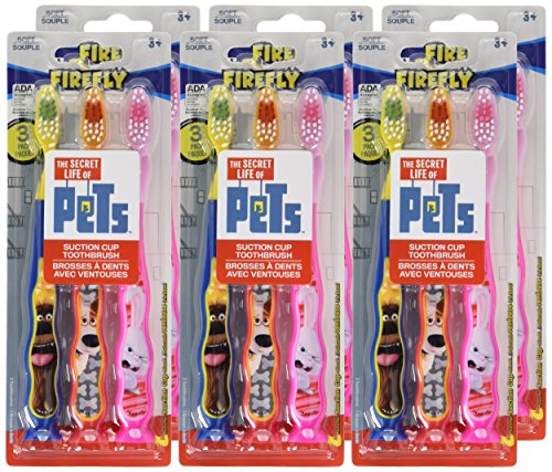 Firefly Secret Life of Pets Ziggly Toothbrushes with Suction Cups 3CT, (Pack of 6)