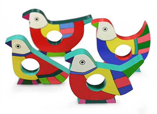 NOVICA "Tropical Birds" Pinewood Napkin Rings, Set of 4