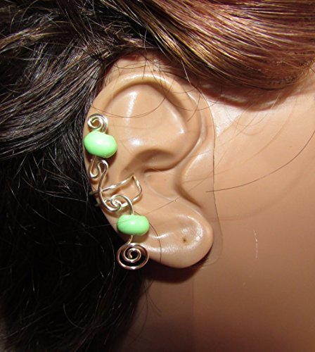 -. Title : 18gauge Wire Wrapped Imitation Green Turquoise and Silver plated Ear Cuff