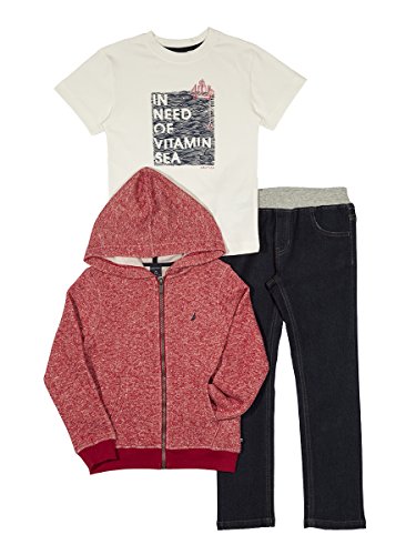 Zip up fleece hoodie Short sleeve crew neck graphic tee Pull on denim pants Brand : Nautica Item model num : N430G30Q EAN : 0887346518327 Package Dimensions(LxWxH) : 40x26x7cm ; 540 g