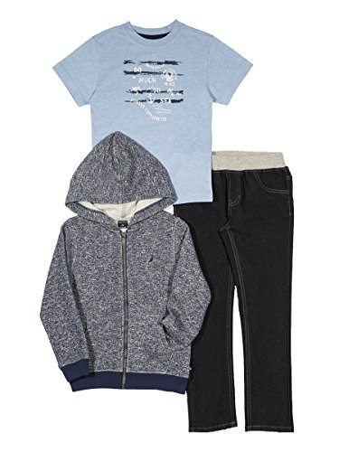 Nautica Little Boys' Fleece Hoodie, Tee and Pull On Denim Pant Set, Retro Blue, 5/6