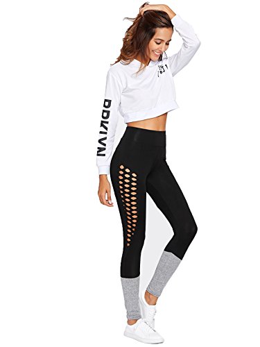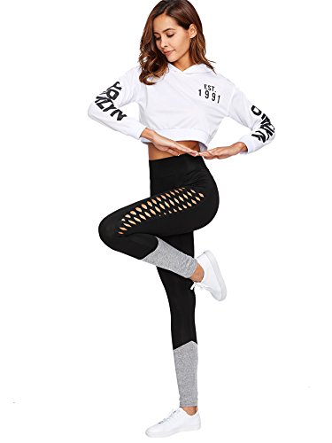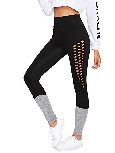-. Binding : Apparel -. Brand : SweatyRocks -. Department : womens -. Feature : Fabric is very stretchy and soft / Color Block high waisted leggings featuring diamond laser cut on both sides / Perfect for casual and daily wear for sP.R.Ing and fall / Wash in cold water, do not bleach / Please refer to our size chart on product description before ordering -. IsAdultProduct : 0 -. ProductGroup : Apparel -. ProductTypeName : PANTS -. Title : SweatyRocks Women's High Waisted Cutout Leggings Yoga Workout Active Pants