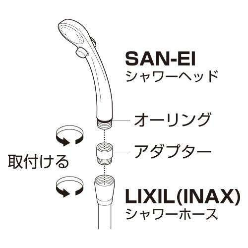 SAN-EI製シャワーヘッドをLIXIL(INAX)製シャワーホースに取付けて水もれする場合に使用するアダプターです。