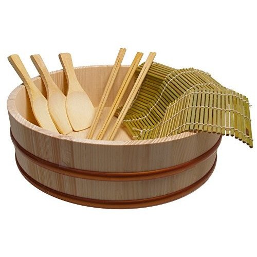 Natural wood sushi rice bowl will absorb excess liquid and that will result in perfect sushi rice.