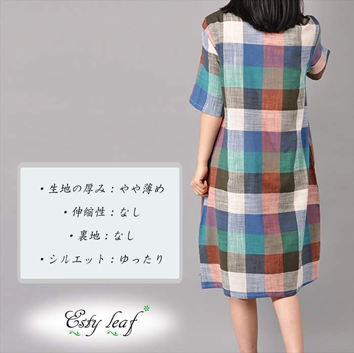 ●春っぽい落ち着いた配色がオシャレで可愛い、チェックワンピース。 ●ワンピースとしてはもちろん、チュニックとしてデニムやスキニー等のパンツと合わせても相性バッチリ。 ●ネックレスとの相性もバッチリです。シンプル過ぎない、適度なアクセントを付け、お洒落度アップ!●素材にはハリのある麻を使用しており、強度もバッチリで、さらっとした着心地を楽しめます。 ★サイズ展開 【M】着丈105cm バスト98cm 袖丈22cm 肩幅40cm 【L】着丈106cm バスト102cm 袖丈22.5cm 肩幅41cm※平均での採寸となりますので、多少の誤差が生じる場合がございます。ご了承くださいませ。★カラー展開 マルチカラー(チェック) ★商品詳細 【素材】:コットン リネン 【透け感】:なし 【厚み】:やや薄め【裏地】:なし 【シルエット】:ゆったり 【伸縮性】:なし【付属品】:なし (コーディネート使用の衣類、アクセサリー等は付属しません)20代 30代 40代 50代 人気 レディースファッション 大きいサイズ
