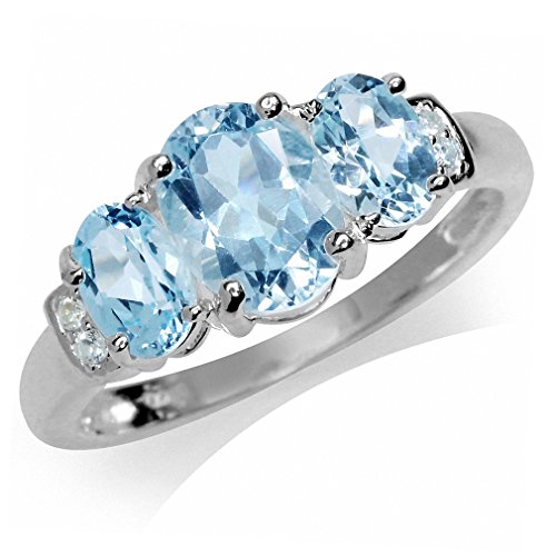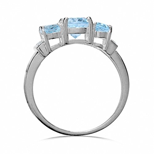 -. Title : 2.72ct. 3-Stone Genuine Blue & White Topaz 925 Sterling Silver Ring