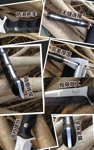 상품 내용 높은 Qualityl 사냥 칼 440c 스틸 Blande 블랙 전술 생존 다이빙 나이프 고정 Blande 사냥 칼 Edc 모델: TX3-2007 총 길이: 22.5 센치메터 블레이드 길이: 9.9 센치메터 소재: 440C 블레이드: 3.2 센치메터 넓은 블레이드 두께: 4 미리메터 생크 길이: 10.5 센치메터 경도: 상당 56HRC 프로세스: 와이어 그리기, 거울 빛, 레이저, 원활한 엉덩이, 티타늄, 그래서 : 포장 상세