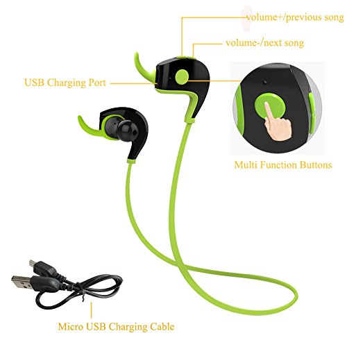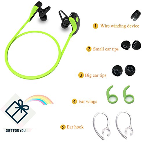 Bluetooth Headphones, Bluetooth Headset, HoHoHoHot Bluetooth 4.1 Wireless Sports Stereo Headphones With Mic( Bluetooth 4.1, aptX, CVC 6.0 Noise Cancelling),Wireless Sweatproof Running Headsets (Green)
